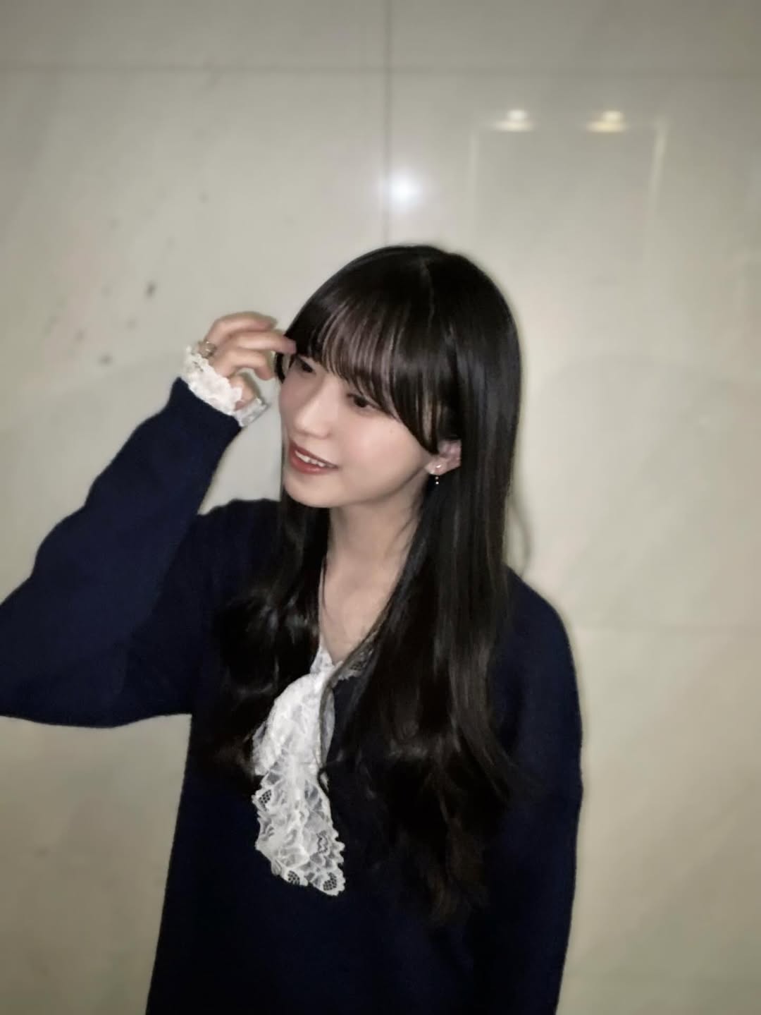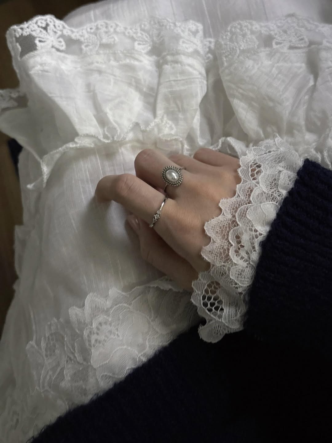 네이비×흰색 레이스가 귀여운 옷이에요🤍